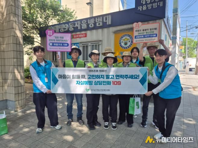 캠페인에 참여한 대명9동 자율방범대원 생명지킴이들은 2023년부터 자살 빈발지역 모니터링 및 순찰 강화, 자살 고위험군 대상자 발굴 및 정신건강복지센터 신속 연계 등 다양한 역할을 수행하고 있으며 앞으로도 지역주민의 안전을 지키는 생명지킴이 역할을 이어나갈 예정이다.