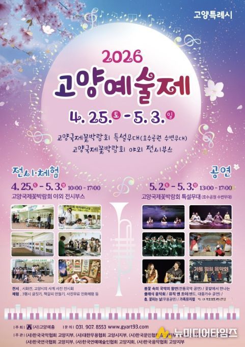 고양특례시의 봄을 수놓는 지역 예술 축제 ‘2026 고양예술제’가 오는 5월 3일까지 고양국제꽃박람회 특설무대와 야외 전시부스에서 개최된다.