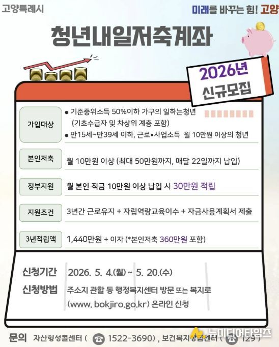 고양특례시는 5월 4일부터 시작하는 청년내일저축계좌 신규 가입자 모집을 앞두고, 가입 독려에 나섰다.