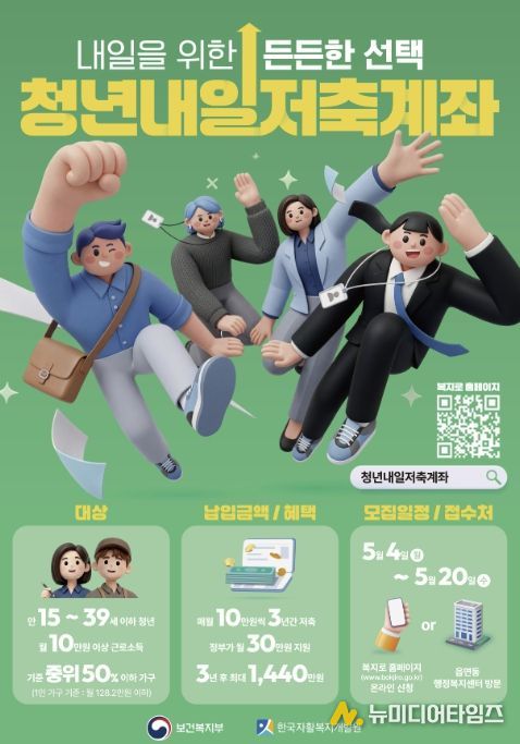 ‘청년내일저축계좌’는 경제적으로 어려운 청년이 목돈을 마련할 수 있도록 정부가 저축액을 매칭해 지원하는 자산형성 지원사업으로, 주거비와 교육비 등 자립 기반 마련에 활용할 수 있다.