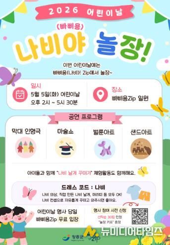 행사장에는 ‘나비 로드’가 조성되며, 드레스코드는 ‘나비’로 설정돼 나비 날개, 머리띠 등 다양한 소품과 의상을 활용해 아이들이 축제의 한 장면을 직접 완성하게 된다.
