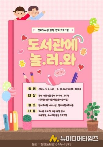 이천시 청미도서관은 오는 5월 6일부터 6월 17일까지 관내 어린이집 유아를 대상으로 도서관 견학 연계 프로그램 ‘도서관에 놀.러.와’를 운영한다.
