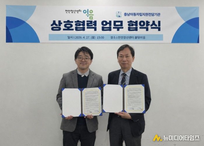 천안시는 천안청년센터 이음이 27일 충남아동자립지원전담기관과 ‘취약계층 청년 발굴 및 통합 지원을 위한 업무협약’을 체결했다고 밝혔다.