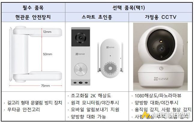 ‘은빛SOL 안심홈세트’는 기본 안전장치와 선택형 보안기기로 구성됐다. 선정자에게는 ▲현관문 안전장치를 기본 제공하며 ▲스마트초인종 ▲가정용 CCTV 중 1가지를 선택해 지원한다.