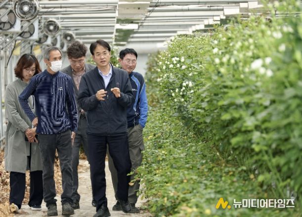이번 방문에서 ‘물올림(색상 가공)’ 기술을 통해 고부가가치 장미를 생산하며 해외 시장을 선도하고 있는 농가의 기술력을 확인하고 농가 관계자를 격려했다.