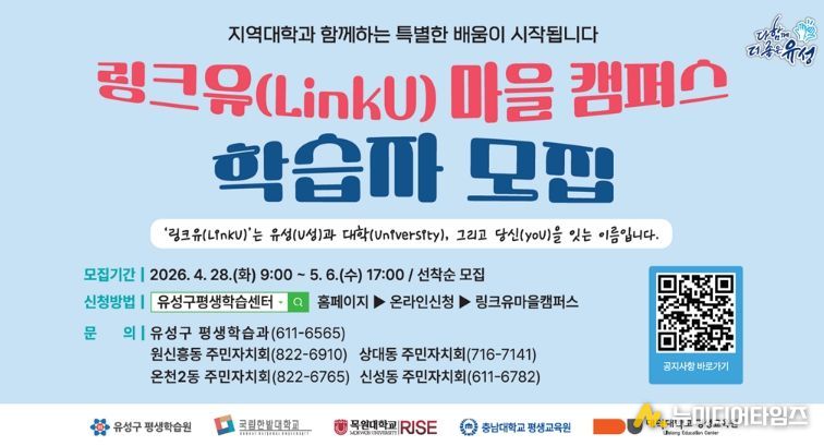 대전 유성구는 5월부터 지역대학과 연계한 주민 밀착형 평생학습 ‘링크유(LinkU) 마을캠퍼스’ 상반기 프로그램을 운영한다.
