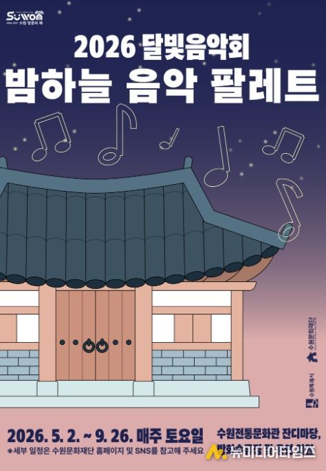 수원문화재단은 오는 5월부터 9월까지 국가유산과 자연, 음악이 어우러진 야간 공연 프로그램 '2026 달빛음악회 '밤하늘 음악 팔레트'’를 운영한다.