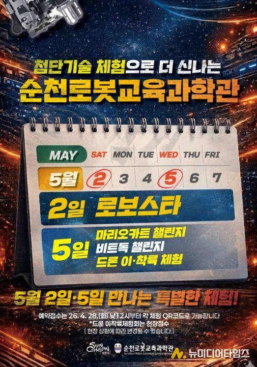해당 프로그램들은 28일 낮 12시부터 예약접수를 시작하며, 상세 내용은 순천로봇교육과학관 홈페이지를 참고하거나 전화로 문의하면 된다.