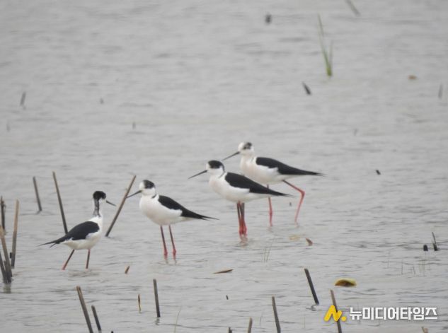 순천만 연꽃 복원습지에 여름철새 장다리물떼새 4마리가 다시 찾아왔다.
