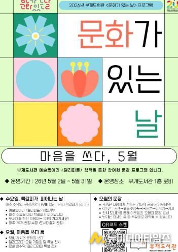 이희수 부평구문화재단 도서관본부장은 “가정의 달을 맞아 시민들이 마음을 글로 표현하고 서로의 감정을 나누는 따뜻한 경험을 할 수 있도록 이번 프로그램을 준비했다”며 “도서관이 단순한 독서 공간을 넘어 감성과 문화를 나누는 열린 공간으로 자리매김하길 기대한다”고 밝혔다.