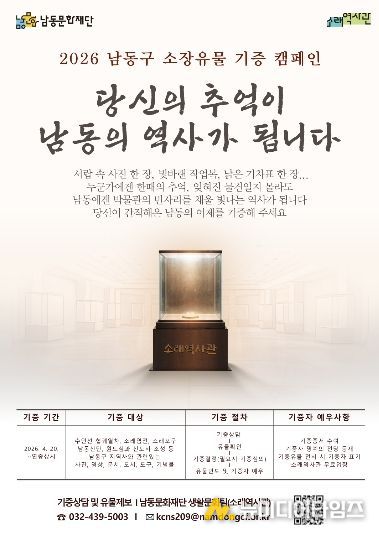 남동문화재단은 소래역사관을 중심으로 ‘2026 남동구 소장유물 기증 캠페인’을 오는 4월 20일부터 연중 상시 운영한다고 28일 밝혔다.