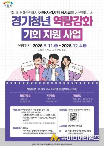이천시가 오는 5월 11일부터 미취업 청년의 어학·자격시험 응시료를 지원하는 ‘경기청년 역량강화 기회지원 사업’ 대상자 모집에 들어간다.
