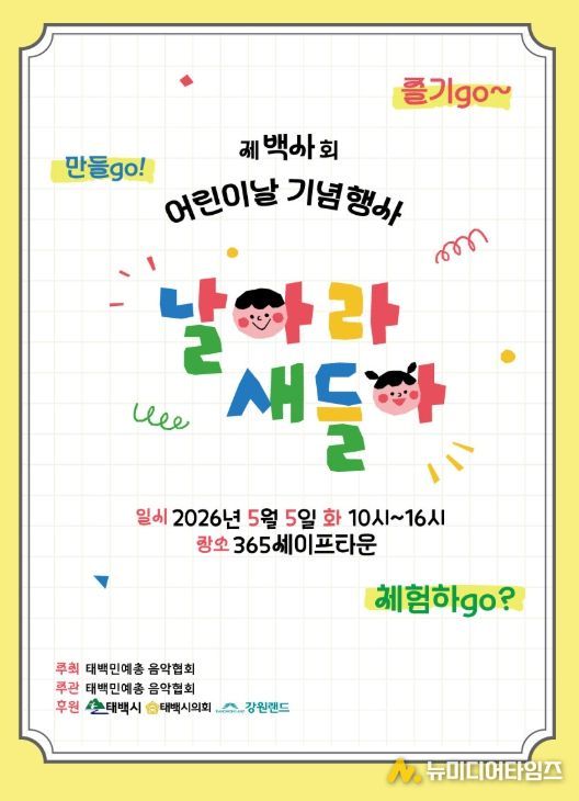 태백시는 제104회 어린이날을 맞아 ‘날아라 새들아 페스티벌–만들GO·즐기GO·체험하GO’를 오는 5월 5일 365세이프타운에서 개최한다고 밝혔다.
