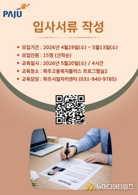 파주시는 중장년 구직자의 원활한 노동시장 재진입을 돕기 위해 ‘입사서류 작성 실습 교육’참여자 15명을 모집한다.