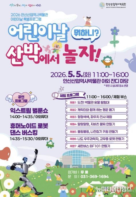 이선희 문화체육관광국장은 “어린이날을 맞아 가족이 함께 즐기고 체험할 수 있는 프로그램을 준비했다”며 “박물관에서 안산의 산업 역사를 배우고 즐거운 추억을 쌓는 시간이 되길 바란다”고 말했다.