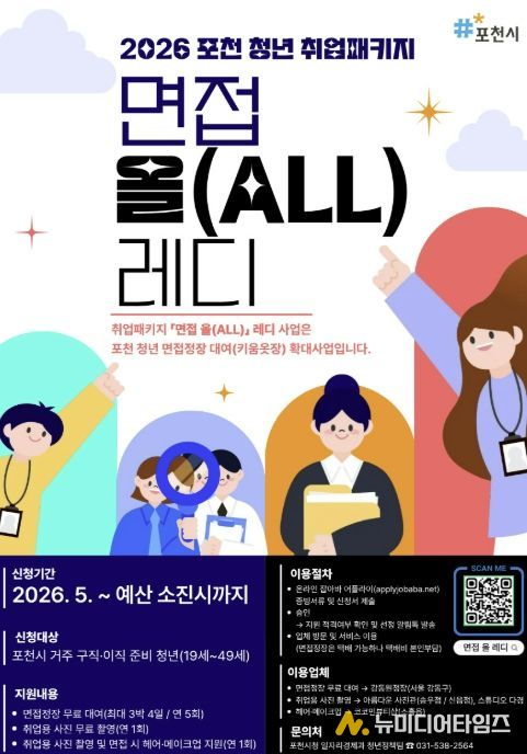 포천시는 구직 및 이직을 준비하는 청년들의 취업 준비 부담을 낮추고 취업 경쟁력을 높이기 위해 오는 5월 2일부터 2026 포천 청년 취업패키지 ‘면접 올(ALL) 레디’ 사업을 운영한다.