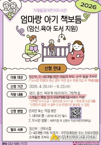 인천광역시교육청서구도서관은 29일부터 임산부와 초보 양육자를 대상으로 ‘엄마랑 아기 책보듬’서비스를 시작한다.