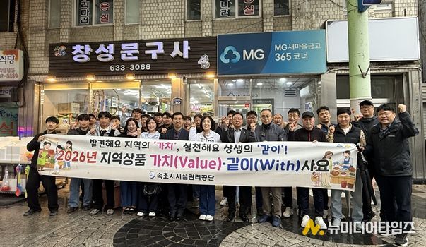 속초시시설관리공단(이사장 이선규)은 28일 속초관광수산시장에서 지역 소상공인 상생 프로젝트 '지역상품 가치(Value)·같이(With)사요'장보기 행사를 개최했다.