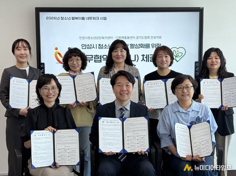 안성시청소년상담복지센터는 지난 27일 안성맞춤공감센터에서 다함께돌봄센터 경기도협의회 안성지회와 청소년의 건강한 성장과 복지 증진을 위한 업무협약(MOU)을 체결했다.