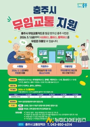 충주시가 교통약자의 이동 편의를 높이고 사회활동 참여를 독려하기 위해 오는 5월 1일부터 ‘충주시 어르신 등 무임교통 지원 사업’을 전격 시행한다고 밝혔다.