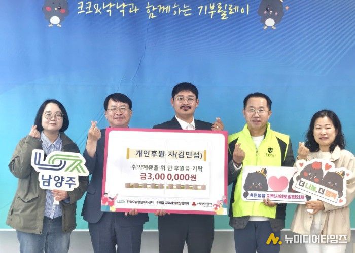 남양주시는 29일 진접오남행정복지센터에서 김민섭씨가 취약계층 지원을 위해 후원금 300만 원을 전달했다고 밝혔다.