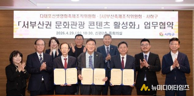부산 사하구는 서부산권에서 개최되는 축제 및 문화 행사를 중심으로 지역 문화관광 콘텐츠의 발전 가능성을 함께 모색하고 지속가능한 협력 기반을 마련하기 위해 4월 29일 다대포선셋영화축제조직위원회, 부산축제조직위원회와 업무협약을 체결했다고 밝혔다.