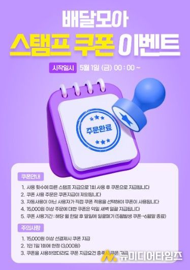 제천시는 공공배달앱 ‘배달모아’ 이용 고객을 대상으로 5월 1일부터 ‘스탬프 쿠폰 이벤트’를 진행한다.