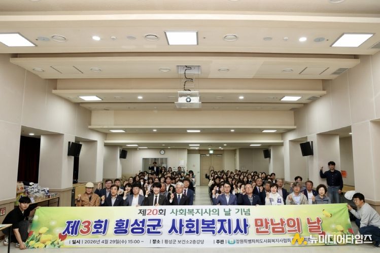 강원특별자치도사회복지사협회 횡성군지회(회장 최근화)는 ‘2026년 사회복지사의 날’을 기념하여 4월 29일 오후 3시 횡성군 보건소 2층 강당에서 ‘제3회 횡성군 사회복지사 만남의 날’행사를 성황리에 개최했다고 밝혔다.