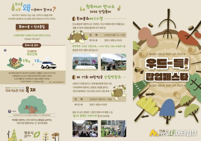 청주시는 오는 5월 7일부터 10일까지 청원구 생명누리공원에서 목재문화 체험행사 ‘우드-득! 팝업페스타’를 운영한다고 밝혔다.