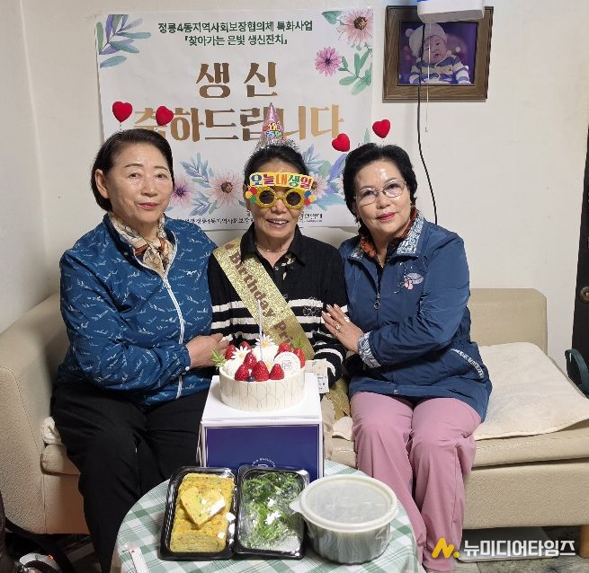 서울 성북구 정릉4동 지역사회보장협의체가 4월 특화사업 ‘찾아가는 은빛 생신잔치’를 처음 추진하고 관내 독거어르신 가정을 방문해 생신을 축하했다.
