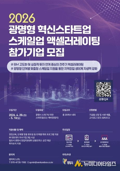 시는 오는 5월 10일까지 ‘2026년 광명형 혁신스타트업 스케일업 액셀러레이팅’ 참가기업을 모집한다.