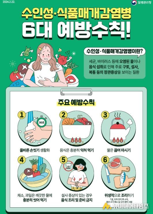 주요 예방 수칙으로는 ▲흐르는 물에 비누로 30초 이상 손 씻기 ▲음식은 충분히 익혀 먹기 ▲물은 끓여 마시기 ▲채소·과일은 깨끗이 씻어 섭취하기 ▲설사 증상 시 음식 조리 및 준비 금지 ▲조리 기구 구분 사용 등이 있다.