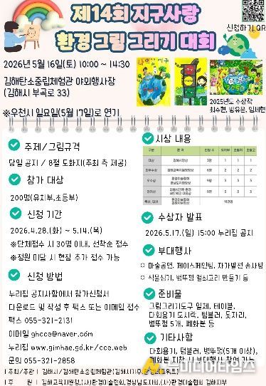 김해시는 오는 5월 16일 제14회 지구사랑 환경 그림그리기대회를 개최한다고 30일 밝혔다.
