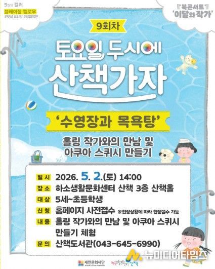 제천문화재단은 책과 함께하는 북콘서트 ‘이달의 작가’ 프로그램으로 다가오는 어린이날을 맞아 '수영장과 목욕탕'의 저자 홀링(본명 홍유경) 작가와의 만남을 개최한다고 밝혔다.