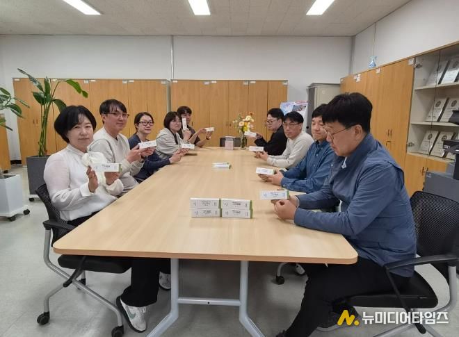 충남 서산시 투자유치과가 청렴 시책 중 하나로 소속 직원 10여 명에게 청렴 선크림을 배부했다고 밝혔다.