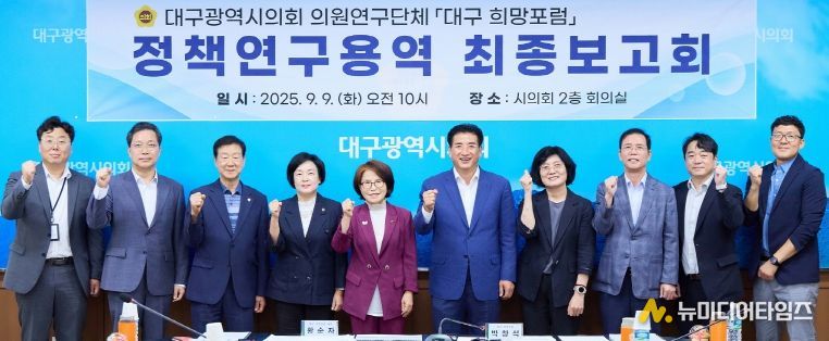 한편, ‘대구 희망포럼’은 미래세대를 위한 지역 정책 발굴과 제도 개선 방안을 모색하고자 작년 8월 결성된 연구단체로, 황순자 의원(대표), 이성오 의원(간사)을 비롯해 김대현, 박창석, 윤권근, 이재숙, 임인환, 정일균, 조경구 의원 등 9명이 활동하고 있다.