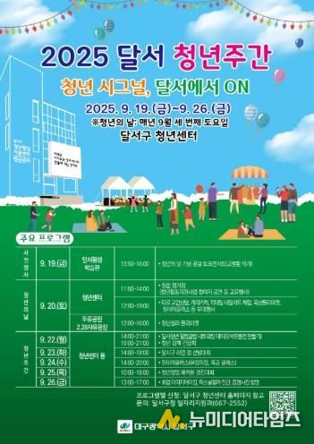 대구 달서구는 오는 9월 20일 ‘청년의 날’(매년 9월 셋째 토요일)을 기념해 9월 19일부터 26일까지 '2025년 달서 청년주간'을 개최한다고 밝혔다.
