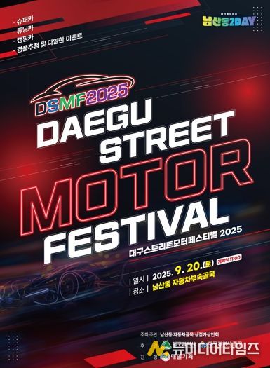 대구 중구는 오는 9월 20일 오전 10시부터 오후 6시까지 남산동 자동차부속골목 일원에서 2025 대구스트리트모터페스티벌을 개최한다.