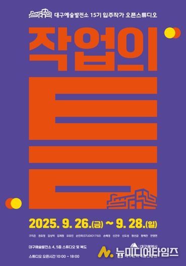 대구문화예술진흥원 문화예술본부는 오는 9월 26일부터 9월 28일까지 3일간 15기 입주작가 오픈스튜디오 ‘작업의 틈’을 대구예술발전소 4·5층 스튜디오 및 복도에서 개최한다.