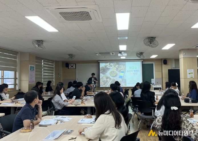 이번 연수에는 학교숲 조성 사업에 선정된 학교의 관리자, 행정실장, 업무 담당자 등 30여 명이 참석했으며 ▲학교숲 조성 사업의 의의 및 협력 방안 ▲사용자 참여형 학교숲 조성 사례 발표 ▲작전여자고등학교 학교숲 조성 현장 체험 등으로 진행했다.