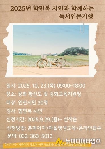 인천광역시교육청신트리도서관은 10월 23일 인천시민을 대상으로 ‘함민복 시인과 함께하는 독서인문기행’을 운영한다.