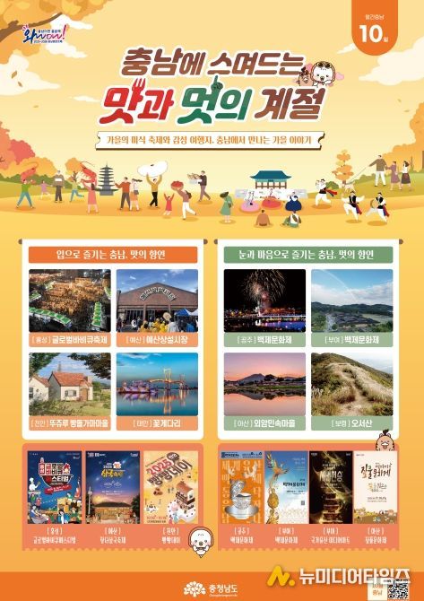 기타 관광 명소·축제 정보는 충남 관광 누리집 또는 월간 충남 10월호 정보무늬(QR코드)를 통해 확인할 수 있다.