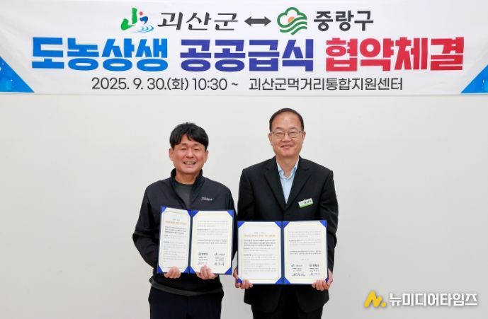 충북 괴산군은 30일 괴산군먹거리통합지원센터에서 서울특별시 중랑구와 도농상생 공공급식 협약을 체결했다고 밝혔다.
