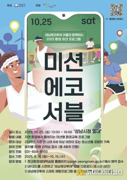 성남시는 오는 10월 25일 오후 1시~4시 시청 곳곳에서 가족 단위 초·중학생 120개 팀(팀당 2~4명, 총 360명)이 참여하는 ‘미션에코서블’ 프로그램을 진행한다.