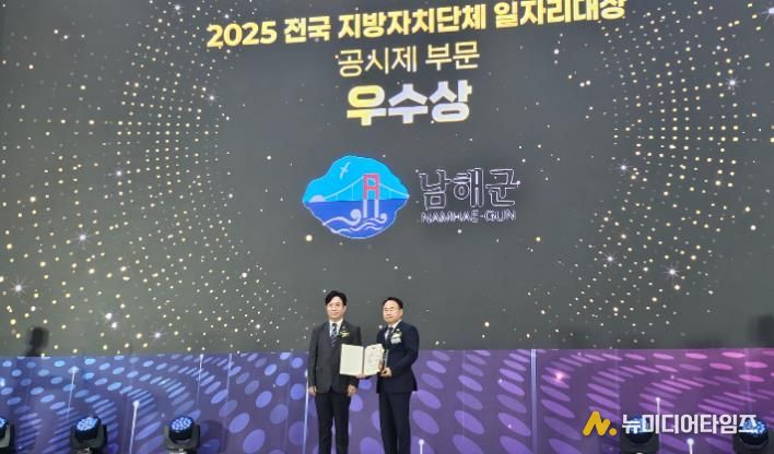 남해군이 9월 30일 청주 오스코에서 열린 고용노동부 주관 ‘2025년 전국 지방자치단체 일자리 대상’ 시상식에서 공시제 분야 우수상을 수상했다. 이번 수상은 2016년 우수상 이후 9년 만에 거둔 성과다.