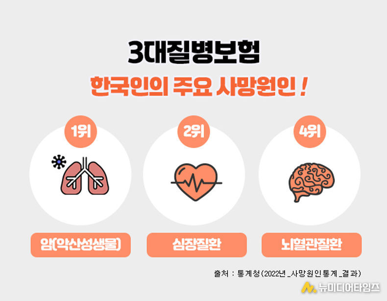 3대질병으로 일컬어지는 암, 뇌혈관질환, 심혈관질환은 한국인의 주요 사망원인에서 상위를 차지하고 있으며, 이에 대한 진단비를 집중적으로 보장해 주는 보험상품을 3대질병진단비 보험이라 할 수 있다.