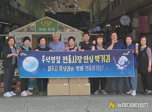 파주시는 지난 29일 관내 전통시장 7개소(금촌전통, 문화로, 명동로, 문산자유, 봉일천, 광탄경매, 적성) 내 식품취급업소 304개소를 대상으로 위생모, 앞치마 630여 개를 지원했다.