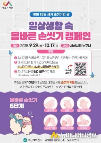 충남 서산시는 세계 손씻기의 날(10월 15일)을 맞아 10월 17일까지 다양한 행사를 진행한다고 밝혔다.