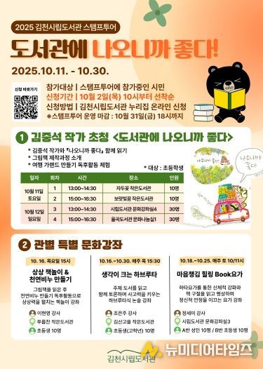 이번 프로그램은 김천시립도서관 본관을 비롯해 율곡도서관, 자두꽃·보랏빛꿈·푸름찬·김산고을 작은도서관 등 관내 6개 도서관에서 진행된다.