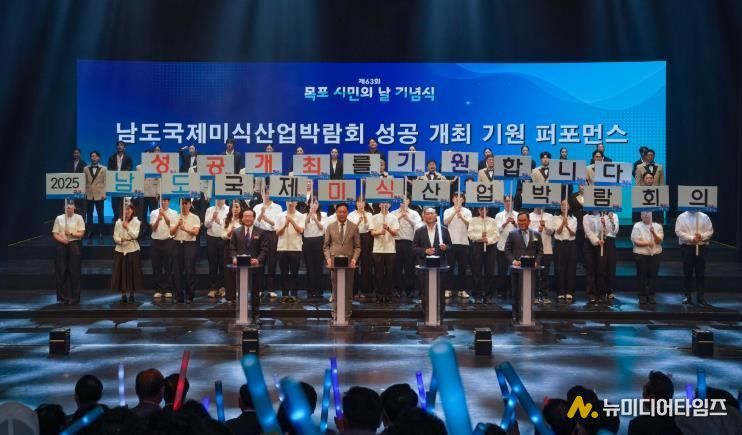 기념식은 ▲시민의 상 시상 ▲목포시립예술단 축하공연 ‘신명나는 목포, 젊은 목포’ ▲2025 남도국제미식산업박람회 성공 개최 기원 퍼포먼스 ▲‘목포의 찬가’ 합창 등으로 다채롭게 진행됐다.